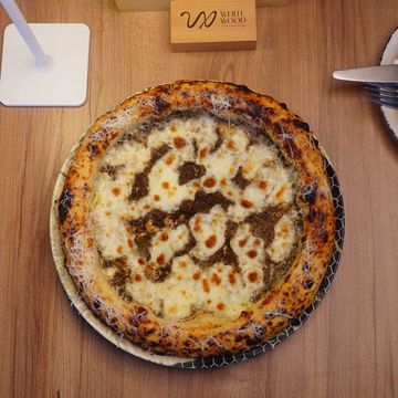 48 Hour Fermented Biga Dough , Truffle Mushroom Duxelles, Mozzarella, Extra Virgin Olive Oil, Parmesan Snow.
