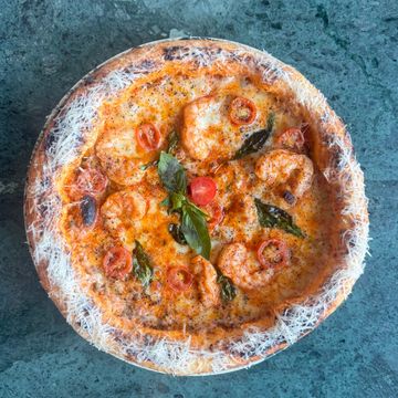48 Hour Fermented Biga Dough, Spicy Lemon Cream, Shrimps, Black Lemon, Mozzarella Cheese, Parmesan Snow, Cherry Tomato & Basil